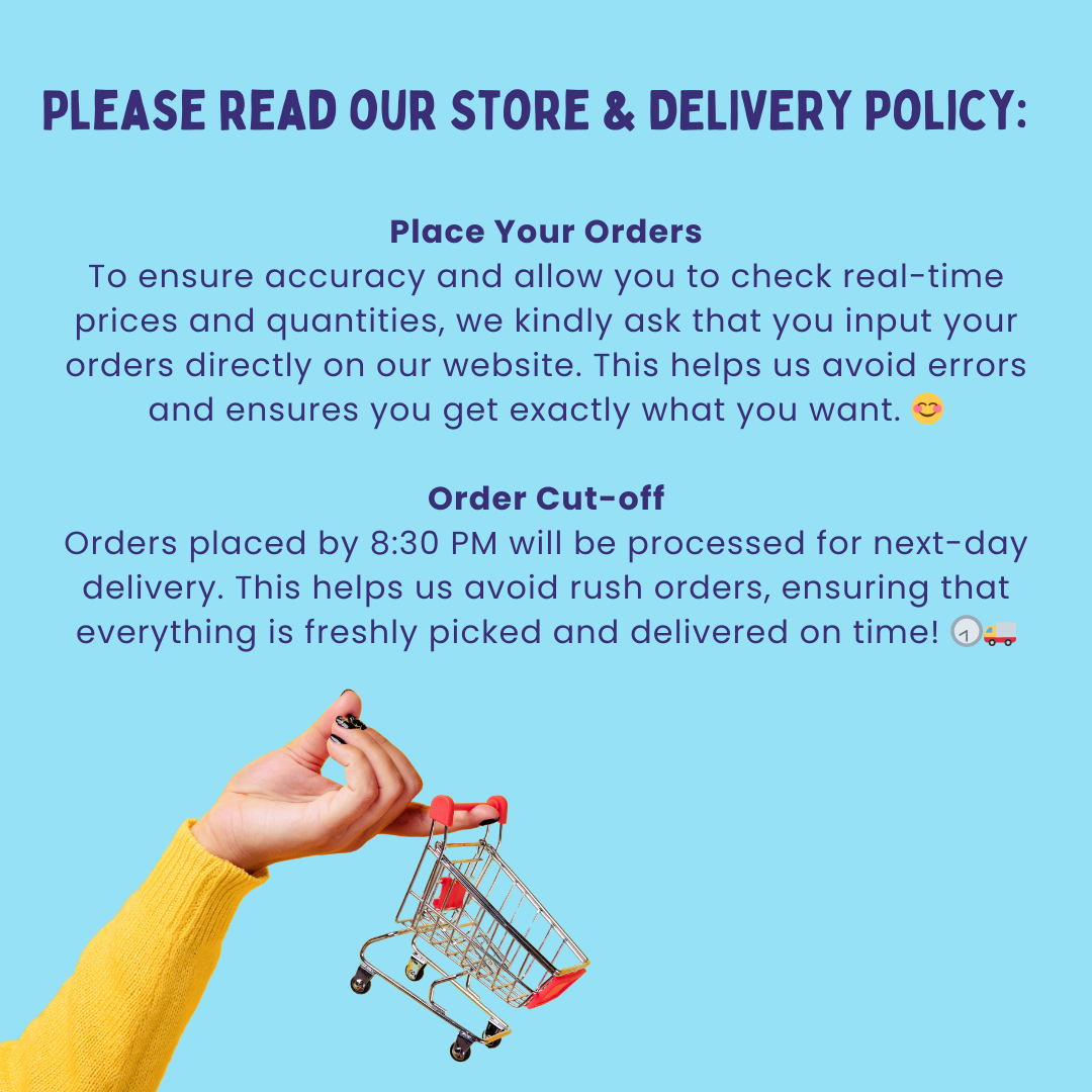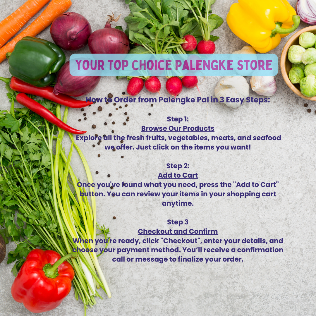 At Palengke Pal, we strive to bring the freshest Palengke finds straight to your home, offering convenience, quality, and affordability. Our goal is to simplify your shopping experience, ensuring you get top-quality produce, meats, and seafood, without the hassle of traditional market trips. We’re your trusted partner in making every meal fresh and delicious!